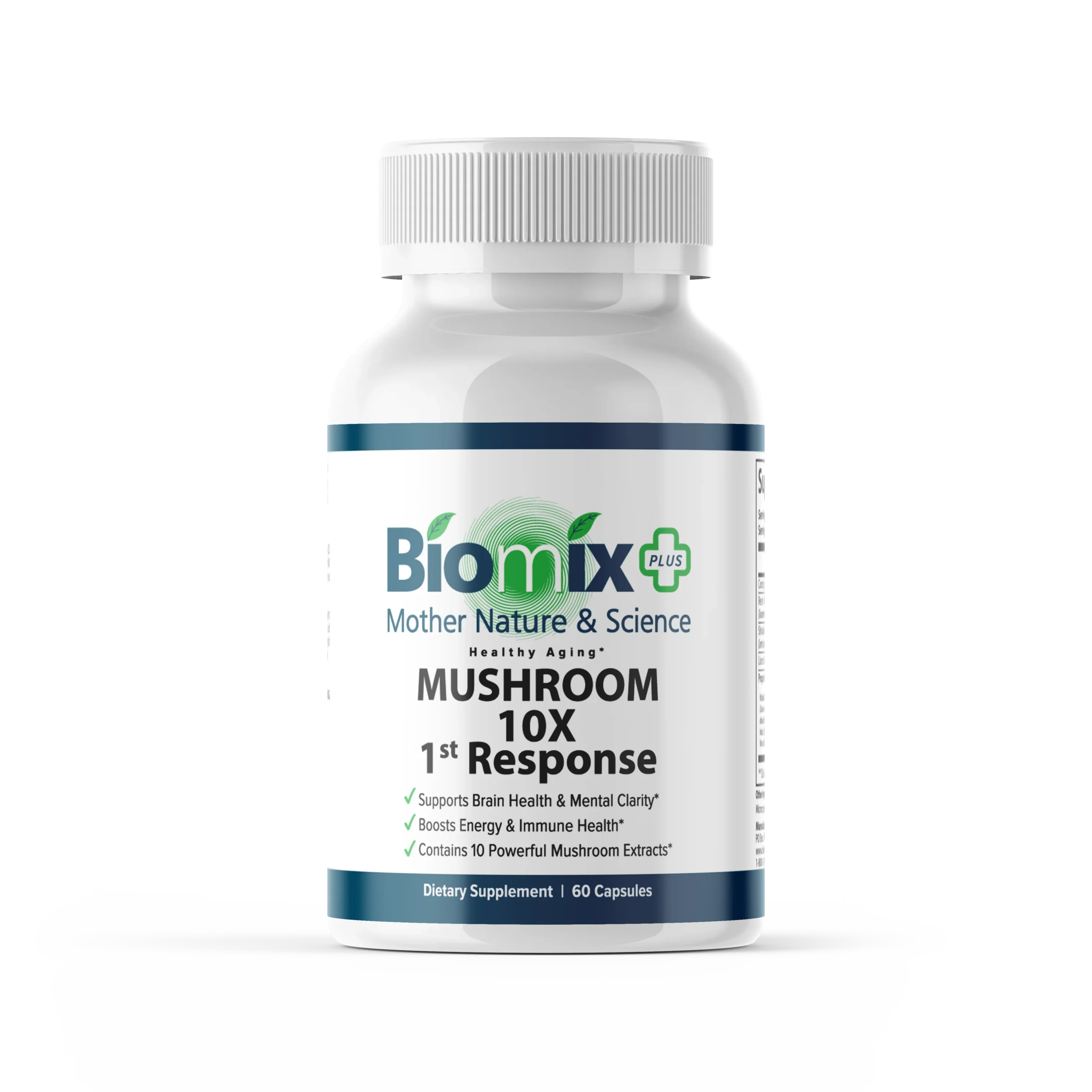 Mushroom 10X 1st Response combines the power of 10 potent mushroom extracts, including chaga, reishi, and lion mane, to support brain health, energy, and immune function. Rich in antioxidants, this formula promotes overall wellness and vitality.*